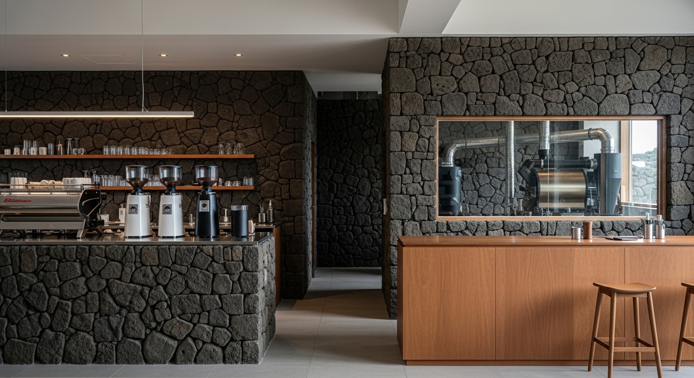 • 로스팅룸과 카페 영역을 시각적으로 분리한 구조